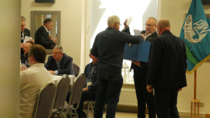 Kol. Jerzy Wiater, w imieniu Prezes Zarządu Głównego PZW kol. Beaty Olejarz, wręczył pamiątkowy grawer z podziękowaniami oraz pogratulował Zarządowi Okręgu osiągnięć w działalności na rzecz wędkarzy.